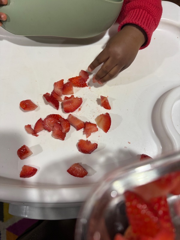 - Avoid choking hazards (cut grapes and tomatoes)